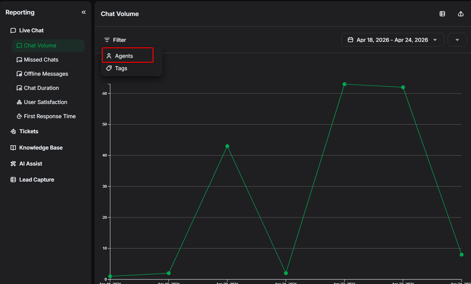 Olá, não consigo filtrar por agentes na tela de Reporting, onde aparece a mensagem “Not found”. Além disso, ao exportar os volumes de chats seria interessante vir o nome do agente que atendeu.